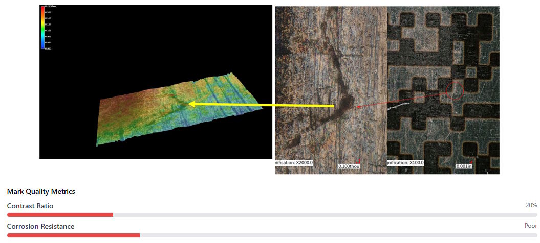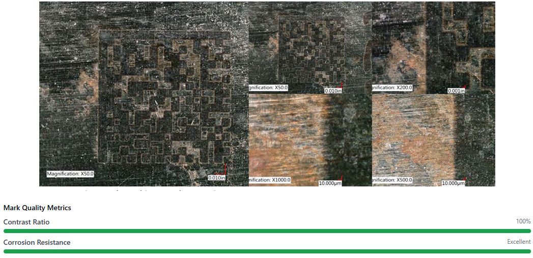 After 10 autoclave cycles, the thermal-matched process maintains stable oxide structure, preserving UDI mark quality with only a 10% reduction in contrast.