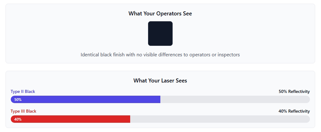 How do your operators determine which type of black anodizing is on the component before laser marking?